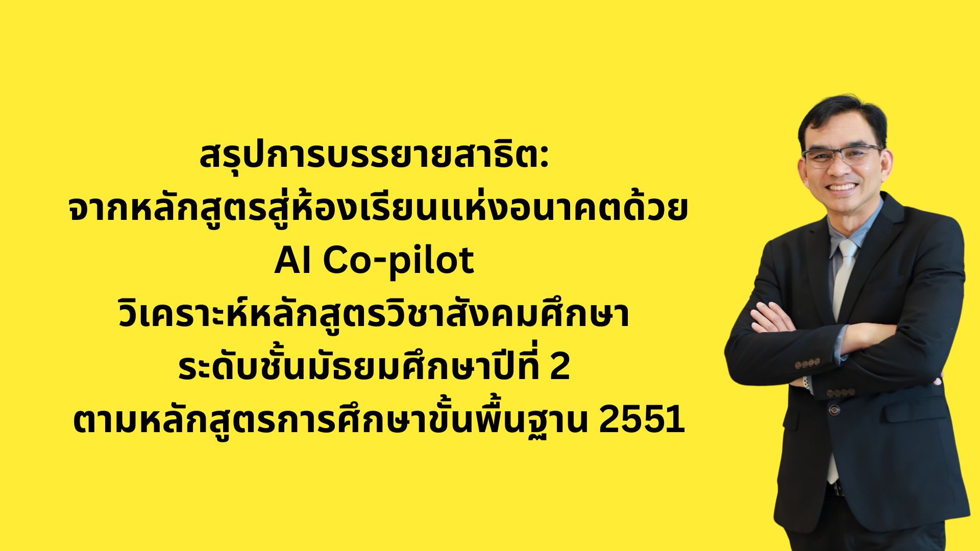 สรุปการบรรยายสาธิต: จากหลักสูตรสู่ห้องเรียนแห่งอนาคตด้วย AI Co-pilot วิเคราะห์หลักสูตรวิชาสังคมศึกษ ระดับชั้นมัธยมศึกษาปีที่ 2 ตามหลักสูตรการศึกษาขั้นพื้นฐาน 2551