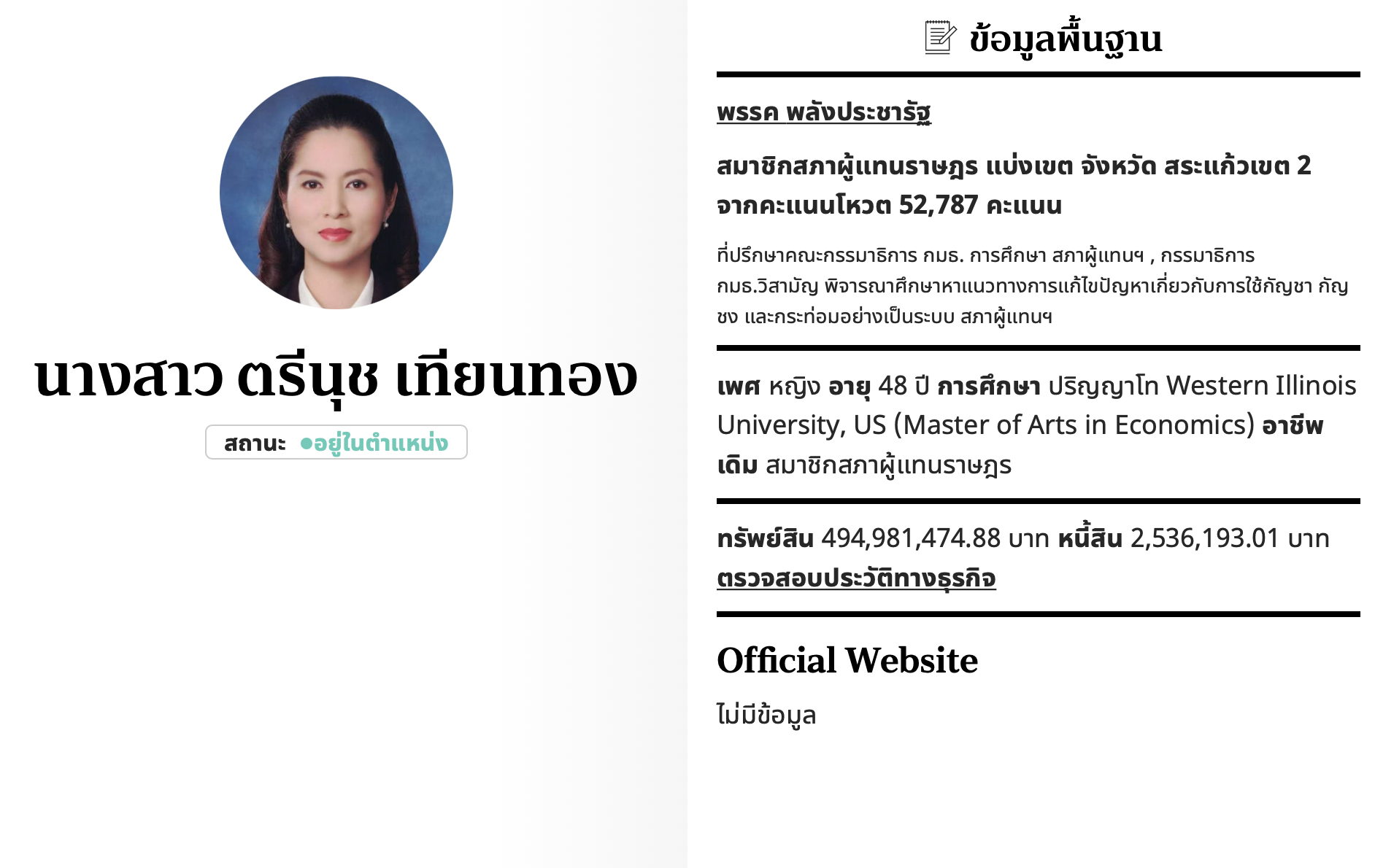 ที่มา: https://theyworkforus.elect.in.th/people/ตรีนุช-เทียนทอง