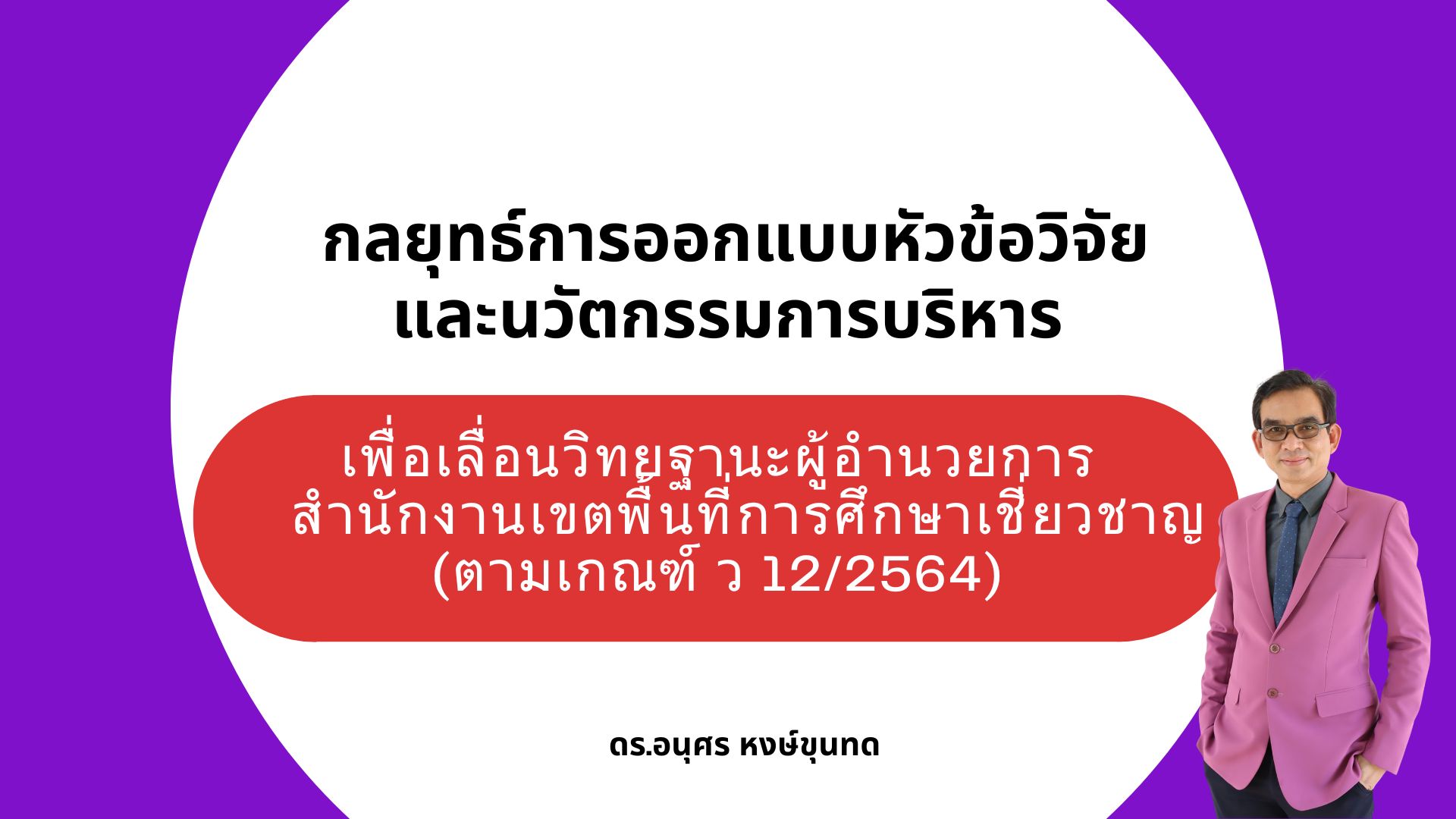 กลยุทธ์การออกแบบหัวข้อวิจัยและนวัตกรรมการบริหาร เพื่อเลื่อนวิทยฐานะผู้อำนวยการสำนักงานเขตพื้นที่การศึกษาเชี่ยวชาญ (ตามเกณฑ์ ว 12/2564)
