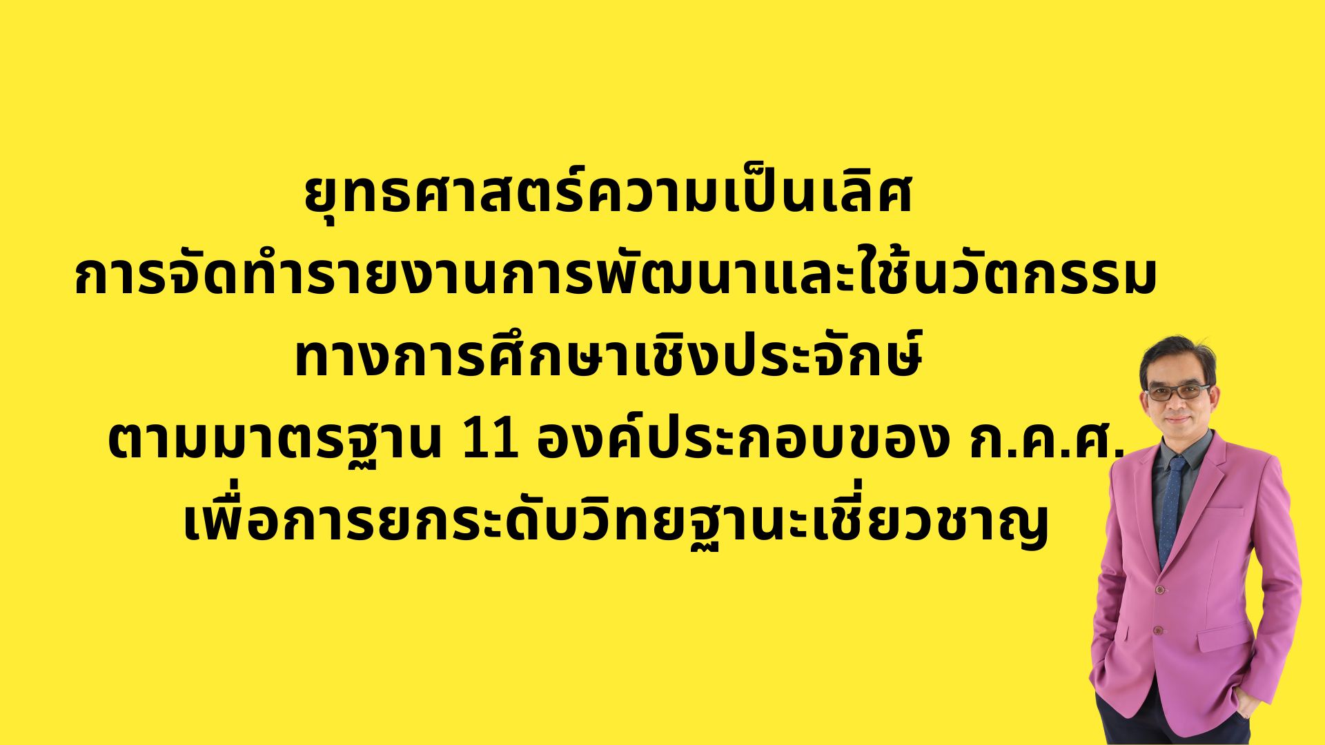 ยุทธศาสตร์ความเป็นเลิศ: การจัดทำรายงานการพัฒนาและใช้นวัตกรรมทางการศึกษาเชิงประจักษ์ ตามมาตรฐาน 11 องค์ประกอบของ ก.ค.ศ. เพื่อการยกระดับวิทยฐานะเชี่ยวชาญ