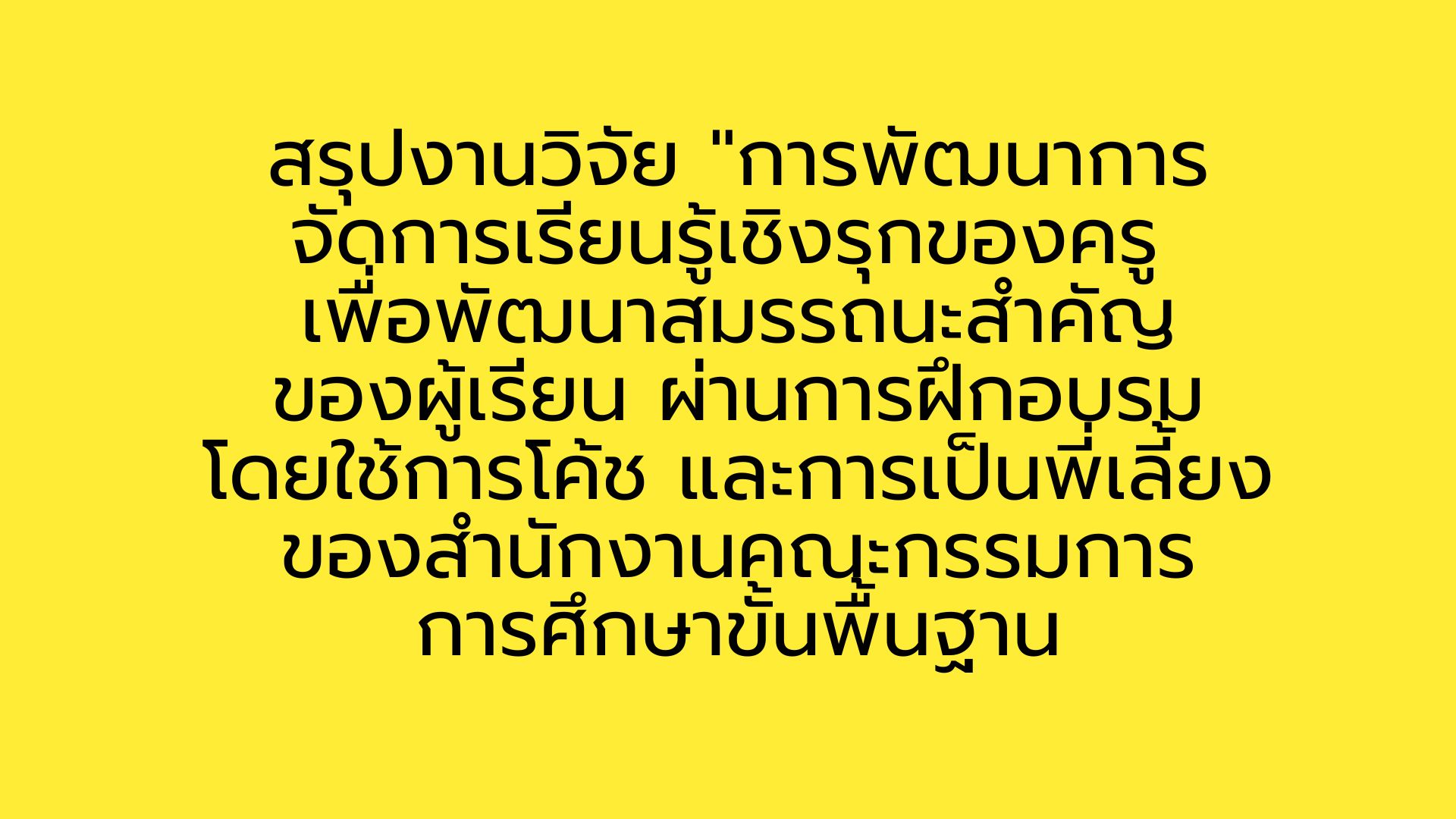 สรุปงานวิจัย “การพัฒนาการจัดการเรียนรู้เชิงรุกของครู เพื่อพัฒนาสมรรถนะสำคัญของผู้เรียน ผ่านการฝึกอบรมโดยใช้การโค้ช (coaching) และการเป็นพี่เลี้ยง (mentoring) ของสำนักงานคณะกรรมการการศึกษาขั้นพื้นฐาน”