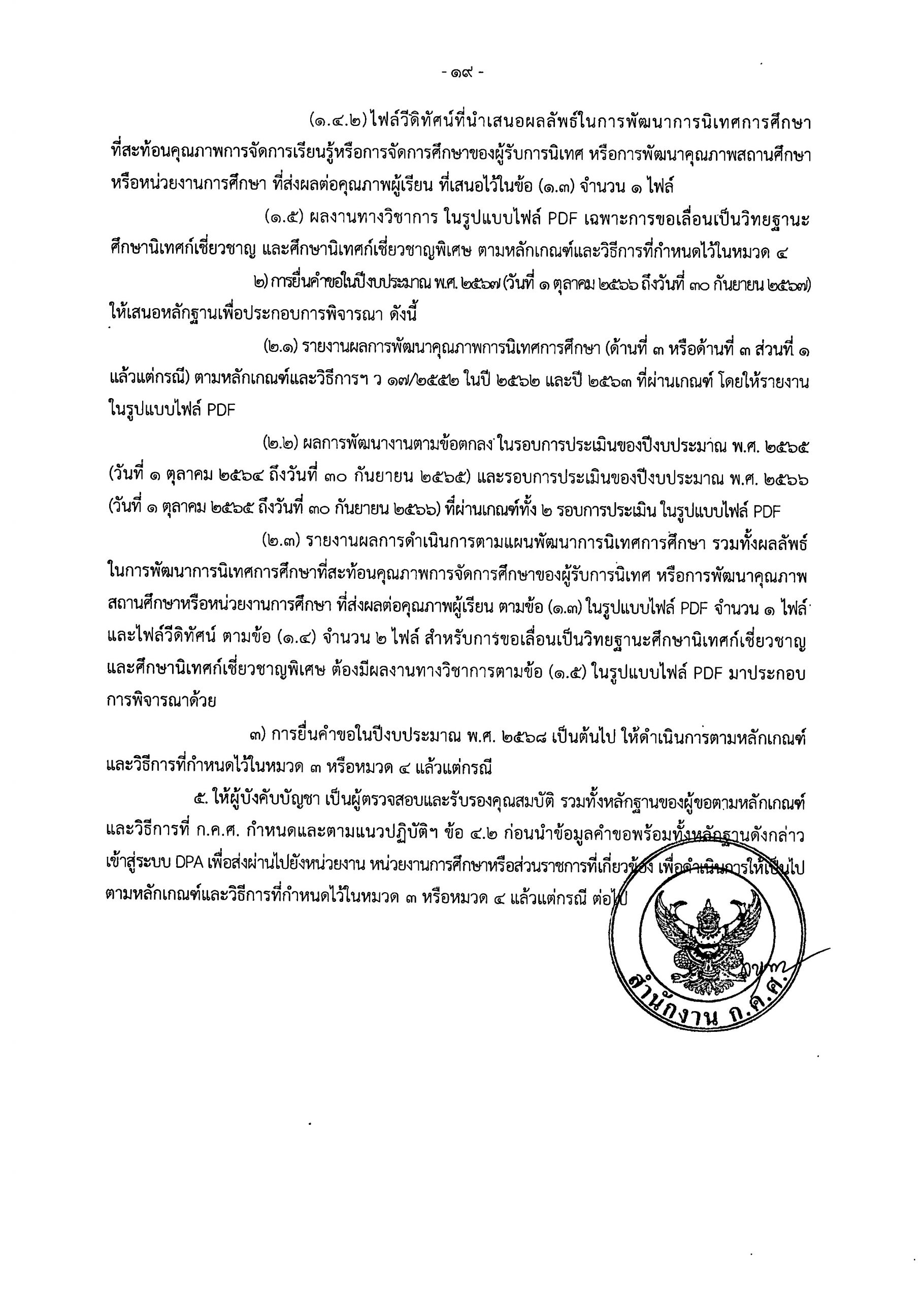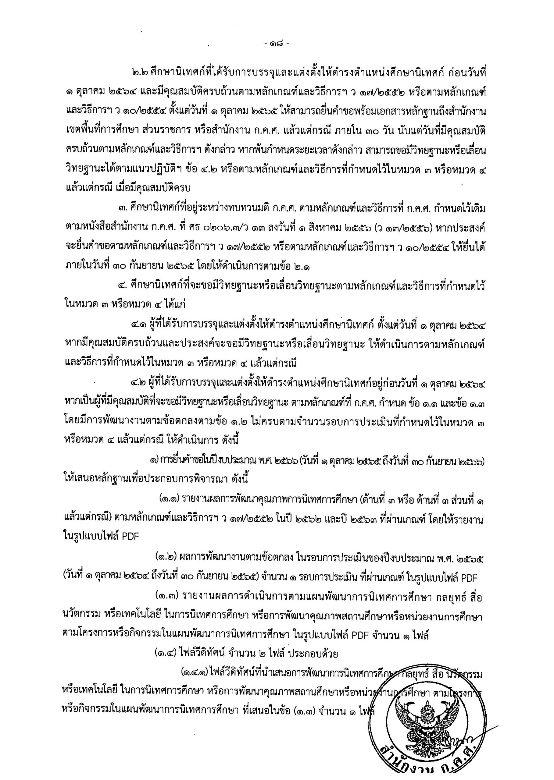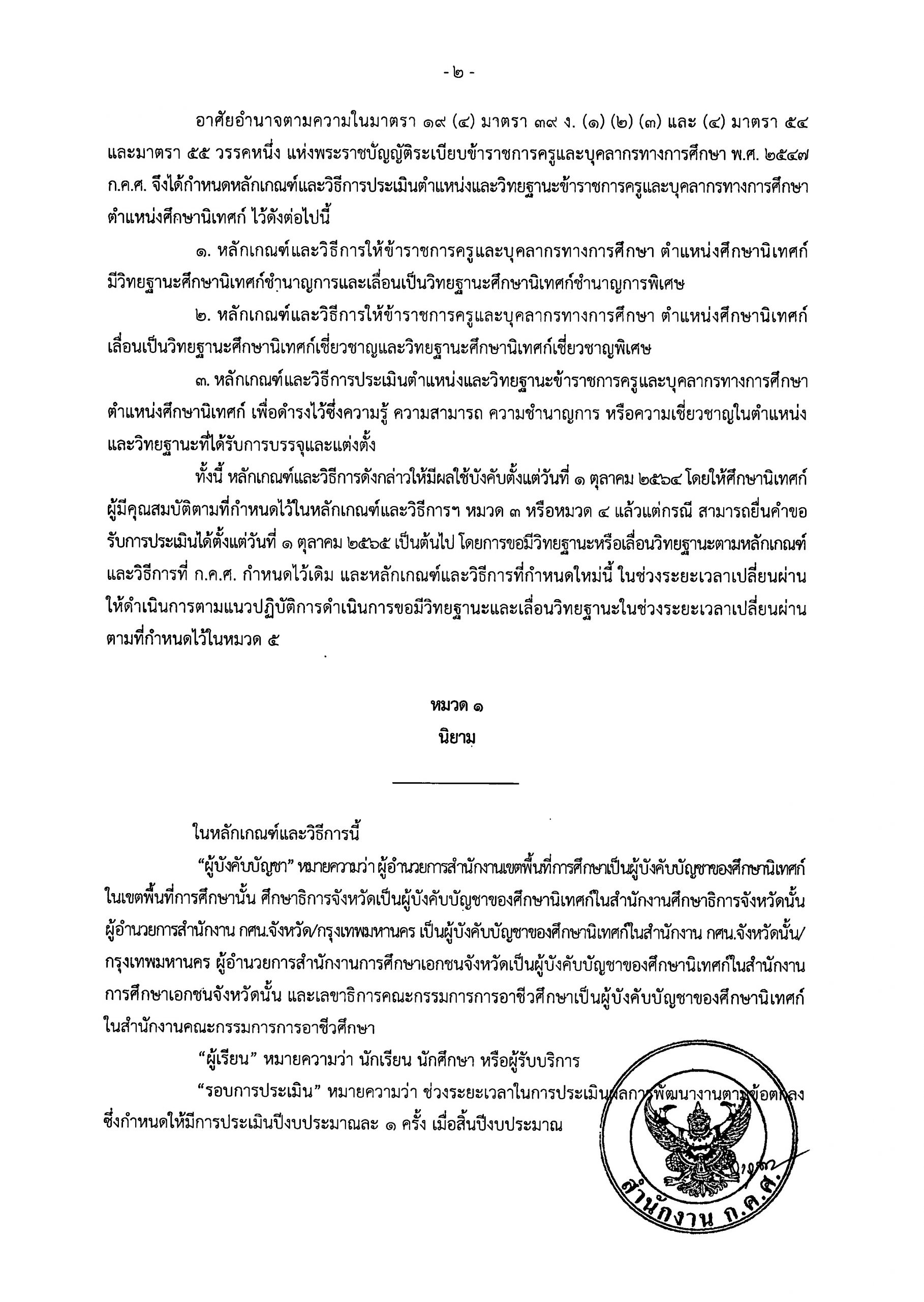 หลักเกณฑ์และวิธีการประเมินตำแหน่งและวิทยฐานะข้าราชการครูและบุคลากรทางการศึกษา ตำแหน่งศึกษานิเทศก์ ว11/2564