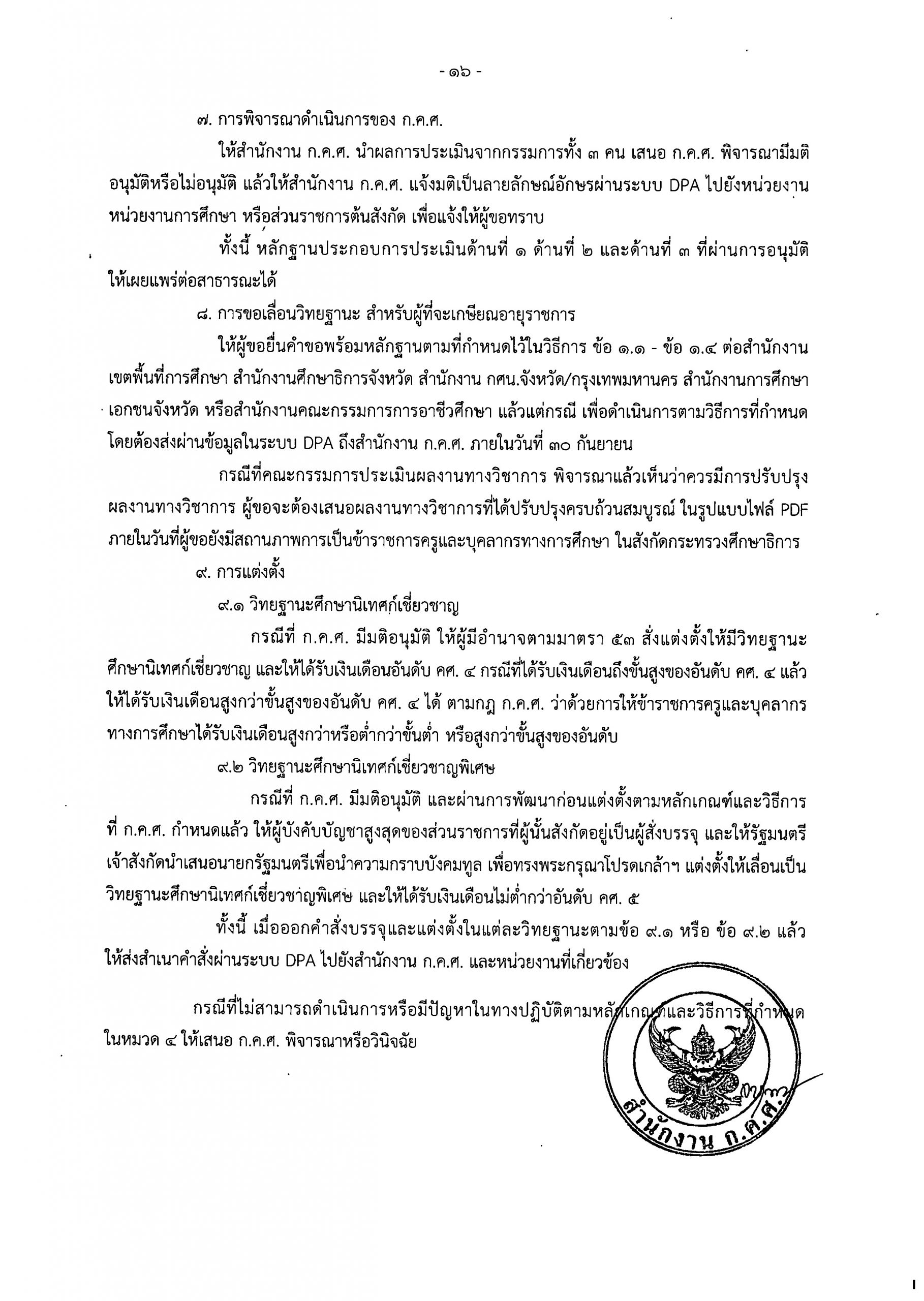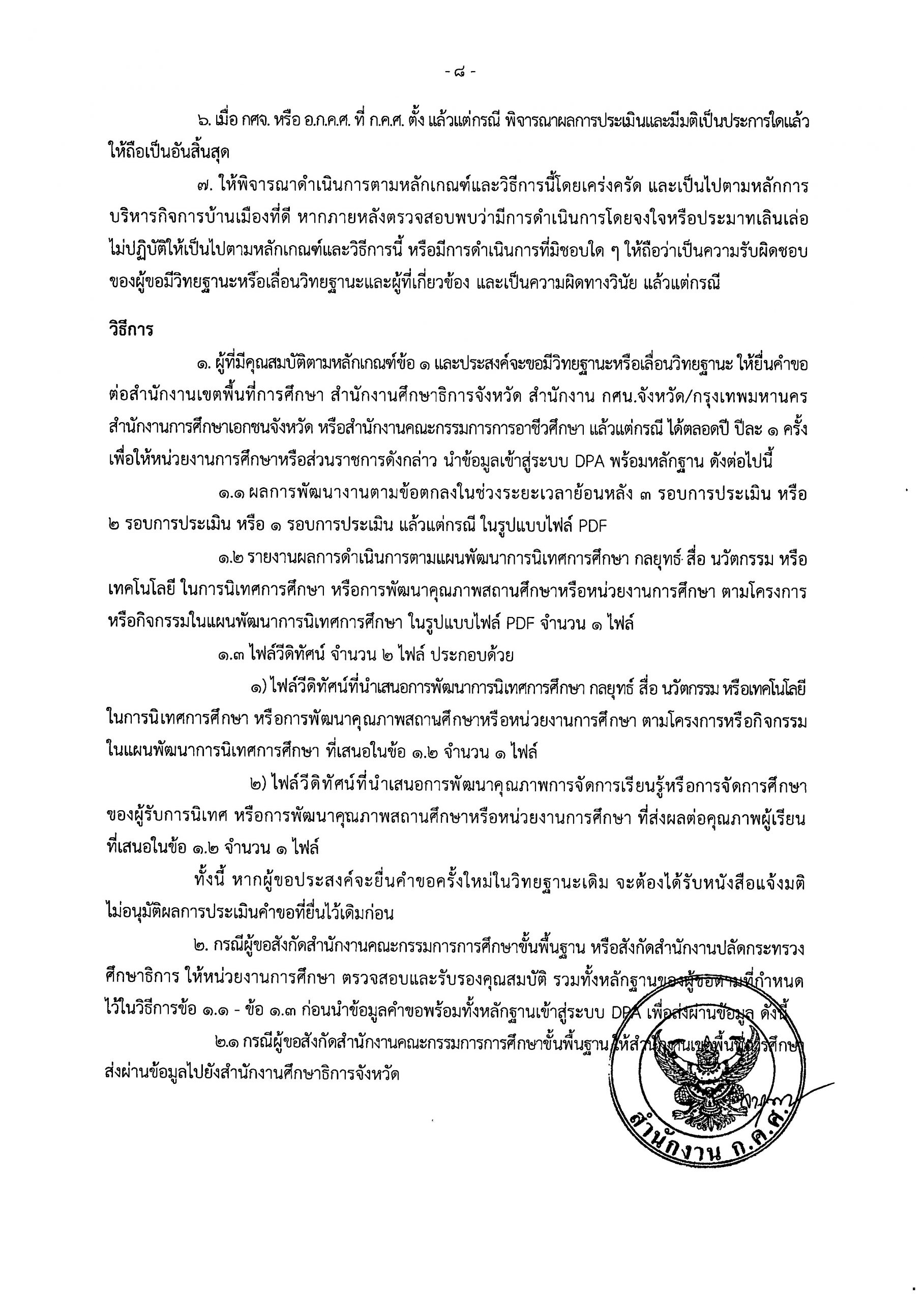 ใจความว่าตามหนังสือที่อ้างถึง 1-4 สำนักงาน ก.ค.ศ. ได้แจ้งหลักเกณฑ์และวิธีการให้ข้าราชการครู และบุคลากรทางการศึกษามีวิทยฐานะ และเลื่อนวิทยฐานะ ให้ส่วนราชการและหน่วยงานการศึกษาทราบและถือปฏิบัติ นั้น ก.ค.ศ. พิจารณาแล้ว มีมติดังนี้