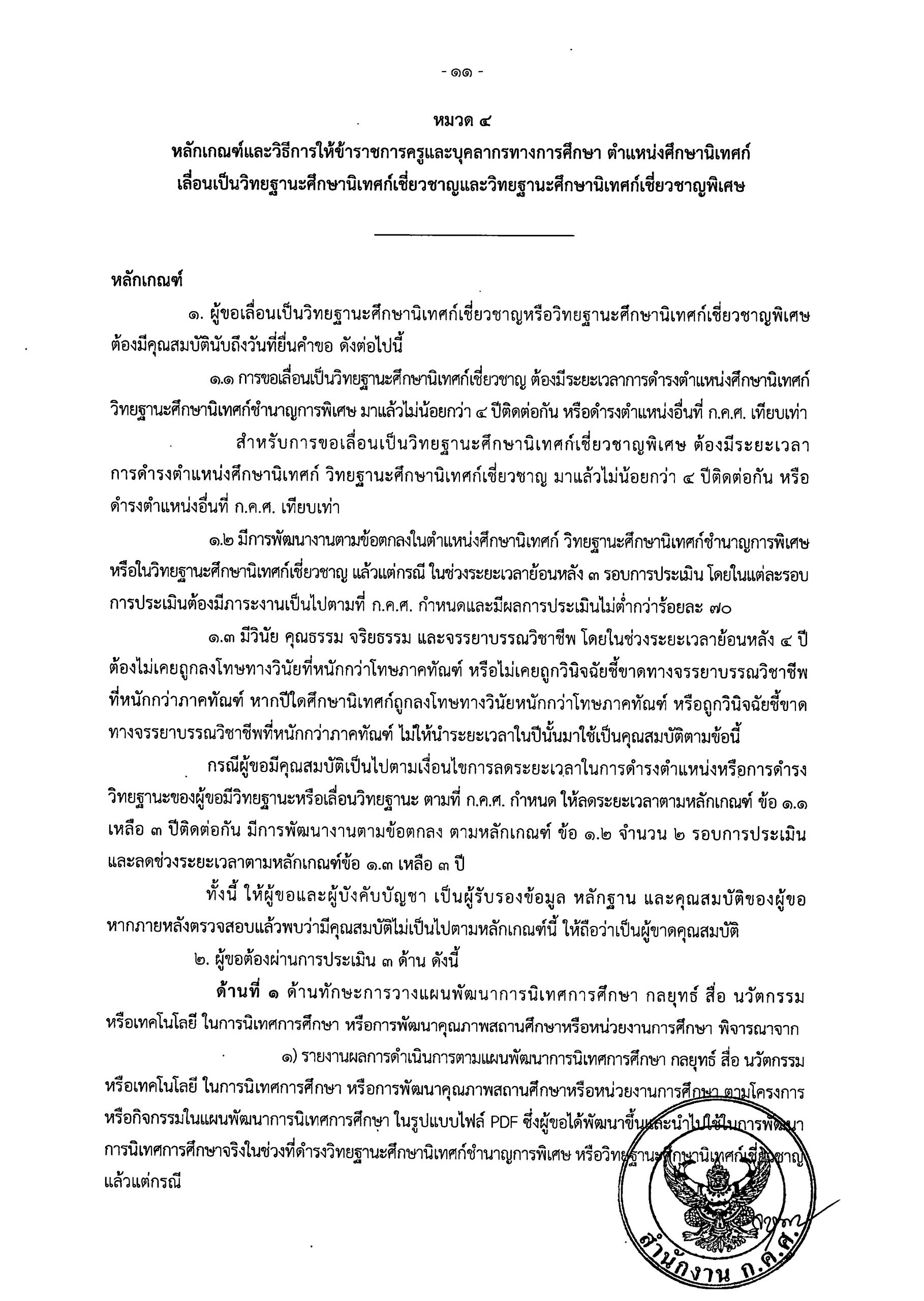 สิ่งที่ส่งมาด้วย หลักเกณฑ์และวิธีการประเมินตำแหน่งและวิทยฐานะข้าราชการครูและบุคลากรทางการศึกษา ตำแหน่งครู