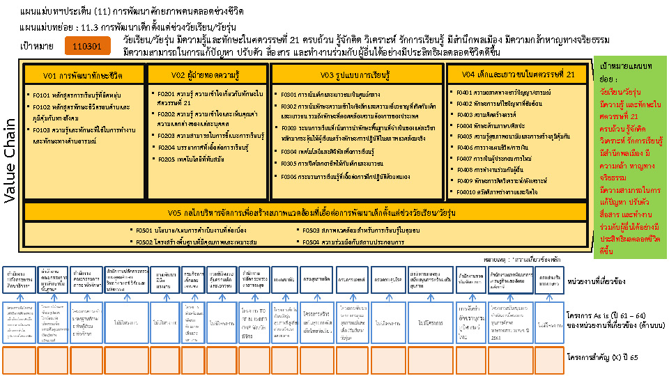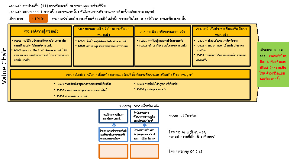 แผนแม่บทย่อย : 11.1 การสร้างสภาพแวดล้อมที่เอื้อต่อการพัฒนาและเสริมสร้างศักยภาพมนุษย์